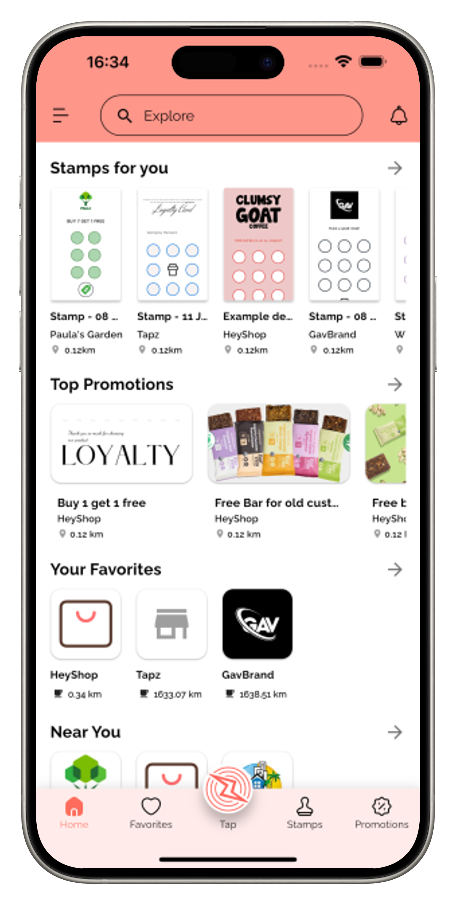 Use App to explore nearby Stamps & Offers. Earn Rewards at your favorite stores.